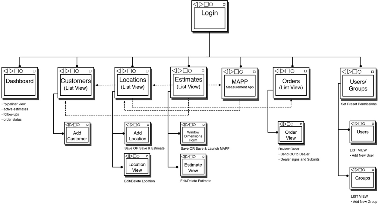 The old MODI application had features that were no longer needed. Other features were not easy to get were confusing. Working together with the Project Manager and Indow Windows, we determined which pages were no longer needed. To mainstream MODI’s flow, I created a sitemap of the content.